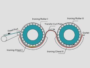 Nuestra calandra industrial cuenta con un muelle importado y un relleno punzonado que le ofrecen una gran rigidez y elasticidad; esto garantiza un contacto completo entre la superficie de planchado de la cubeta y el tejido que se quiere planchar. Este relleno destaca por su impermeabilidad al aire, lo que permite eliminar de humedad generada durante el proceso de planchado. Este diseño de cuba encamisada, el muelle y el relleno garantizan un efecto de planchado óptimo.